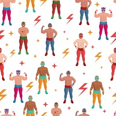 Sewing Fabric With Mexican Wrestler In Costume And Mask Seamless Pattern Strong Muscular Lucha Libre Wrestling Fighter Sportsman And Athlete Showing Muscle Power Repeated Wallpaper Design Vector Illustration Cottonbee